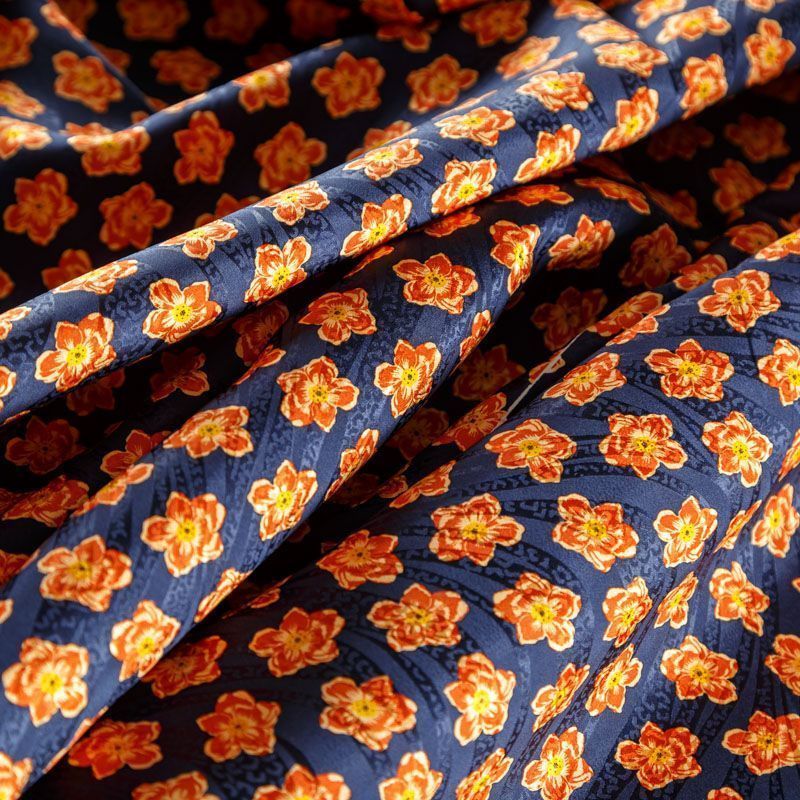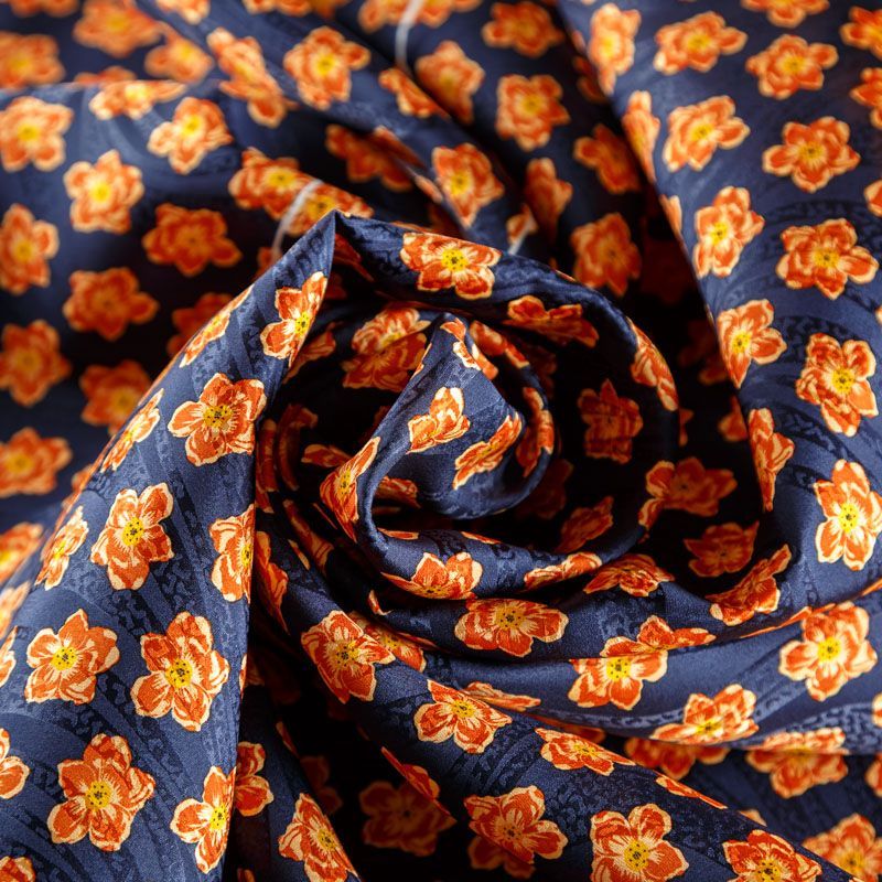 Шелк натуральный К18-055 темно-синий принтованный в Казани