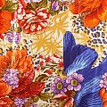 Шелк натуральный К27-0036 сливочный принтованный