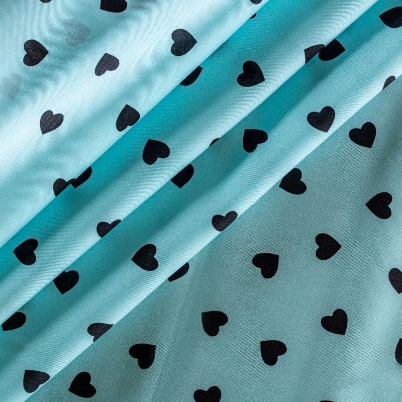 Итальянский креповый шелк с романтическим принтом на мятно-голубом фоне. Ткань тонкая, не просвечивает, отлично драпируется, легкая и струящаяся. Идеально подойдет для пошива платьев и сарафанов расклешенных моделей, с воланами, летящих юбок, топов, блузки, костюма в пижамном стиле.