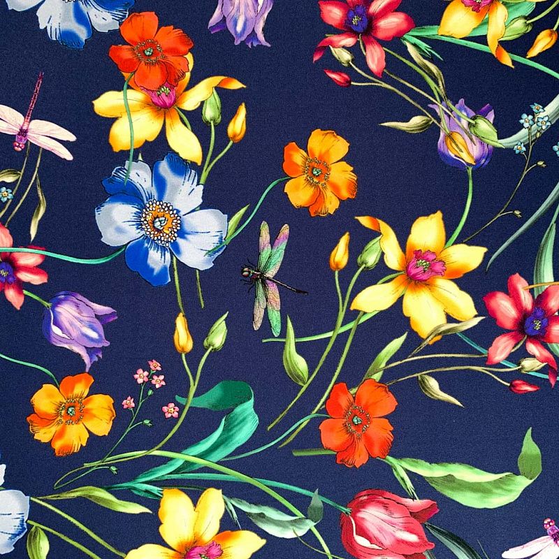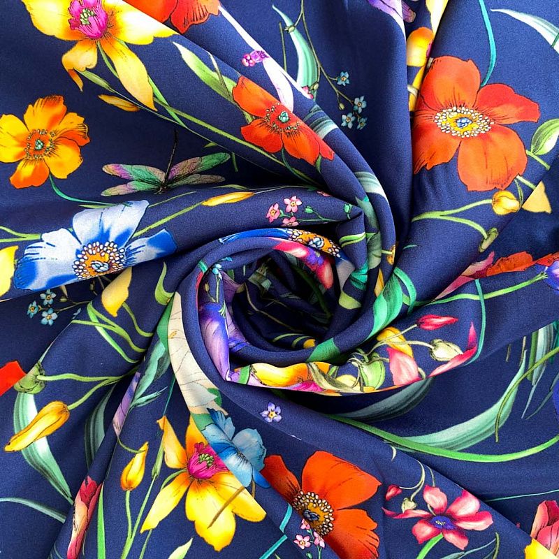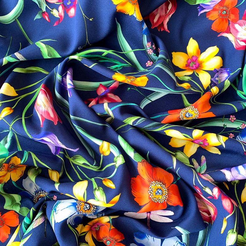 Шелк натуральный К32-155 темно-синий принтованный в Казани