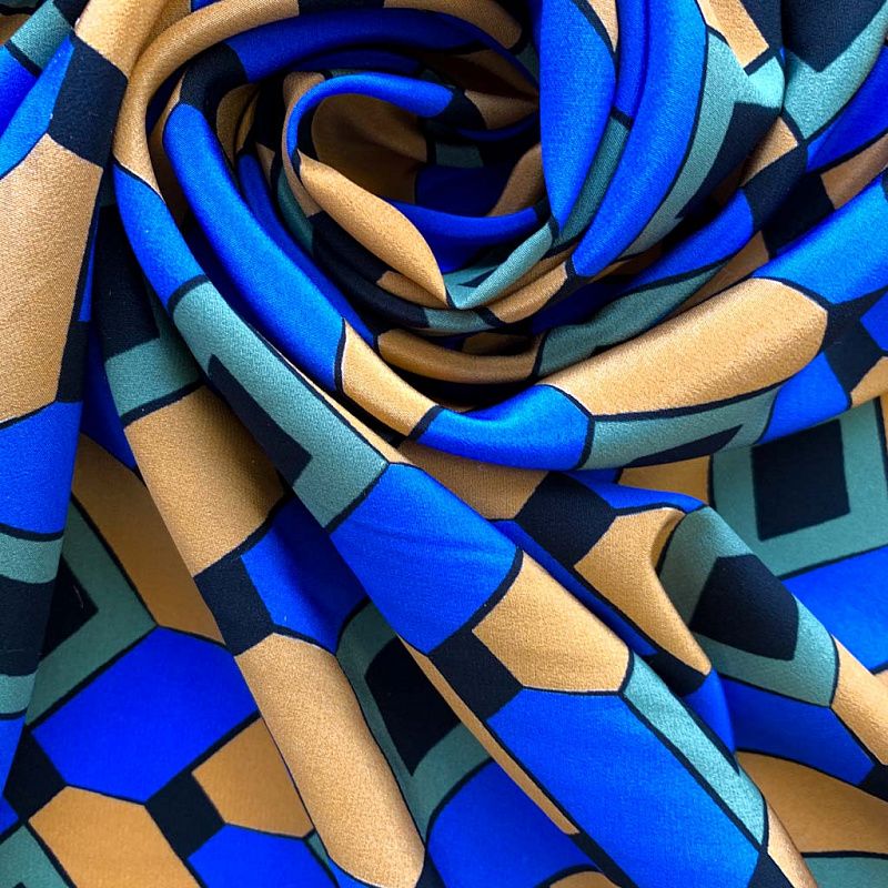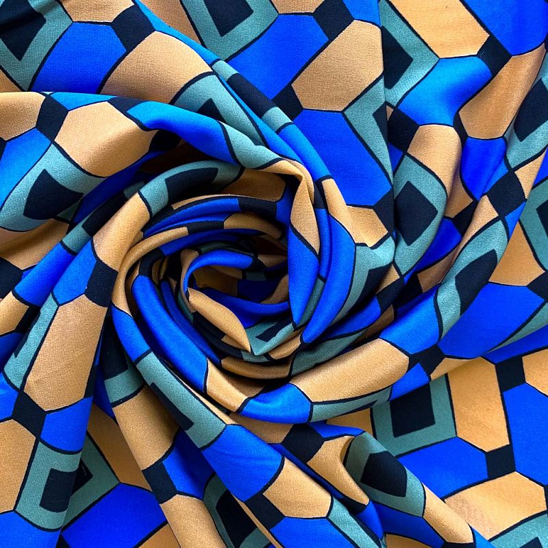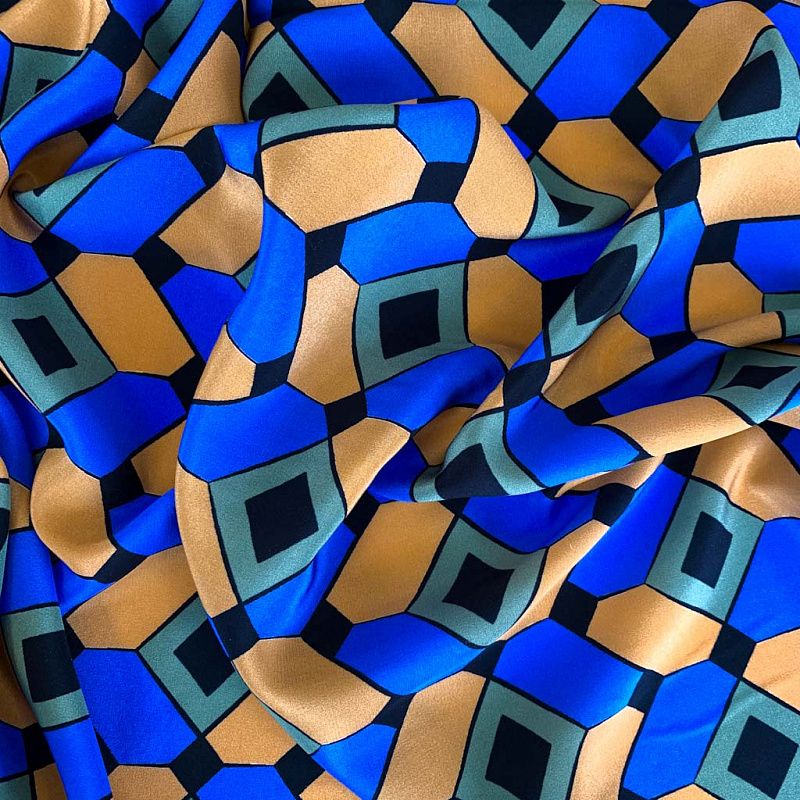 Шелк натуральный К32-232 ярко-синий принтованный в Казани