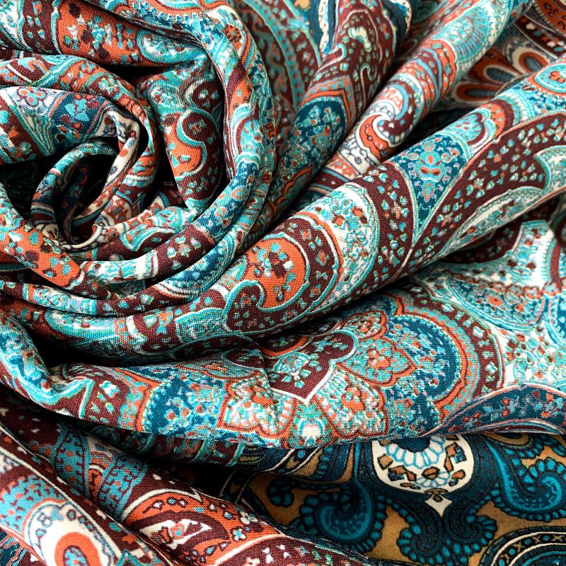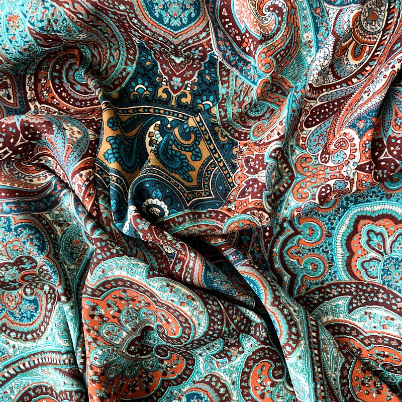 Шелк натуральный К32-242 бирюзово-коричневый принтованный в Казани