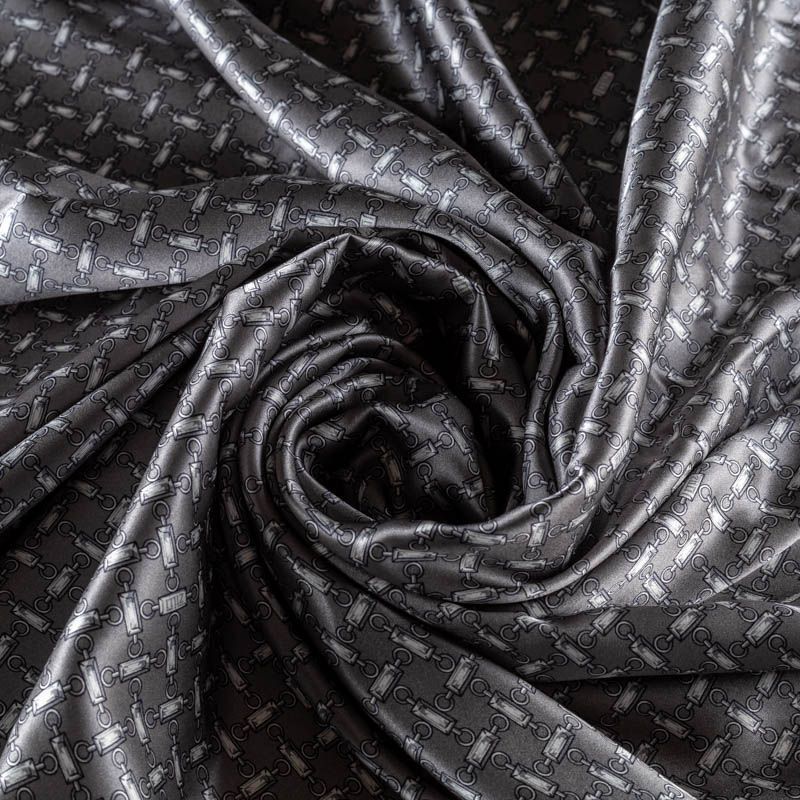 Шелк натуральный К36-245 серо-стальной принтованный в Казани