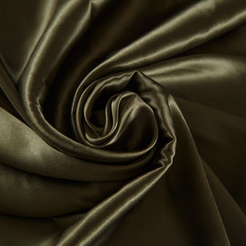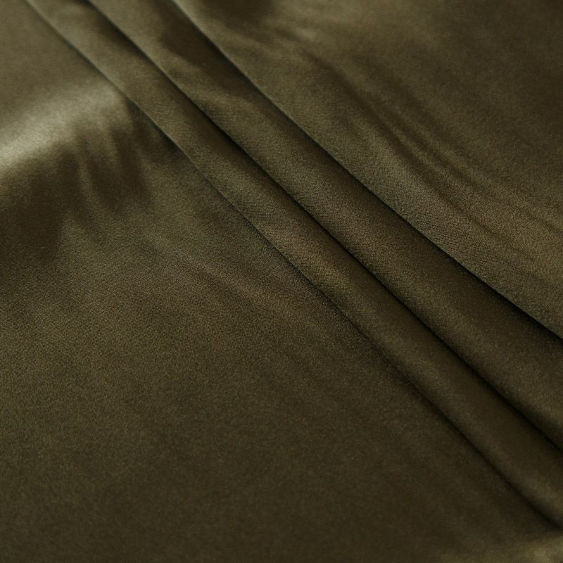 Шелк натуральный стрейч 064-11904 оливково-зеленый хаки однотонный