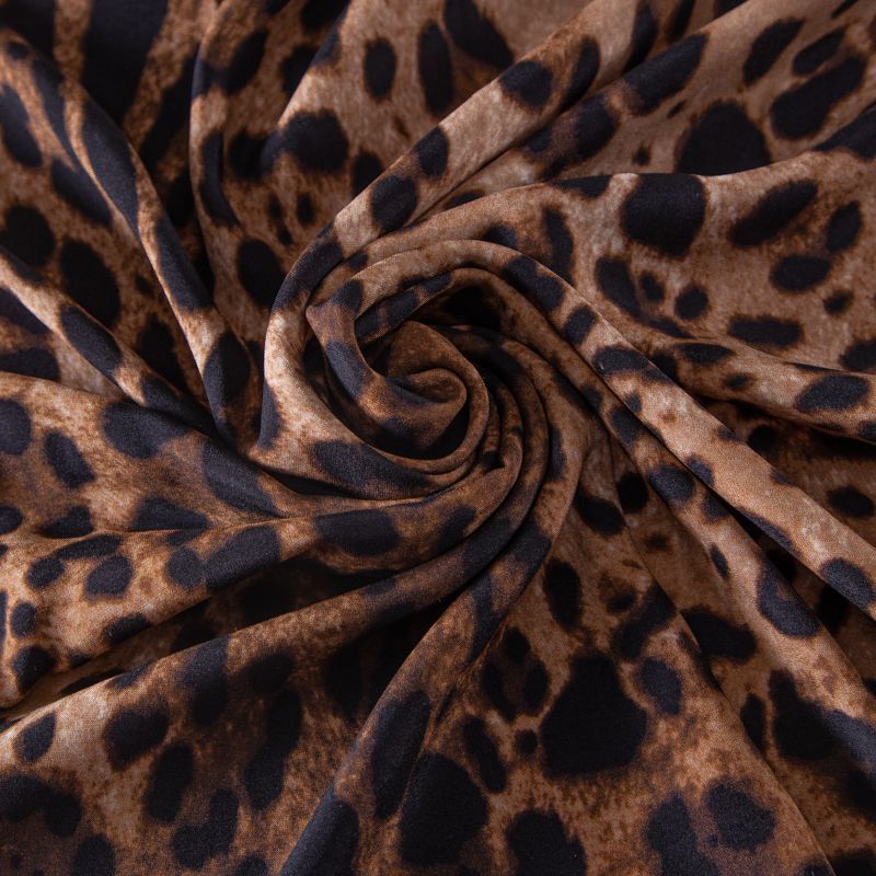 Шелк натуральный стрейч 064-20053 коричневый лео в Казани