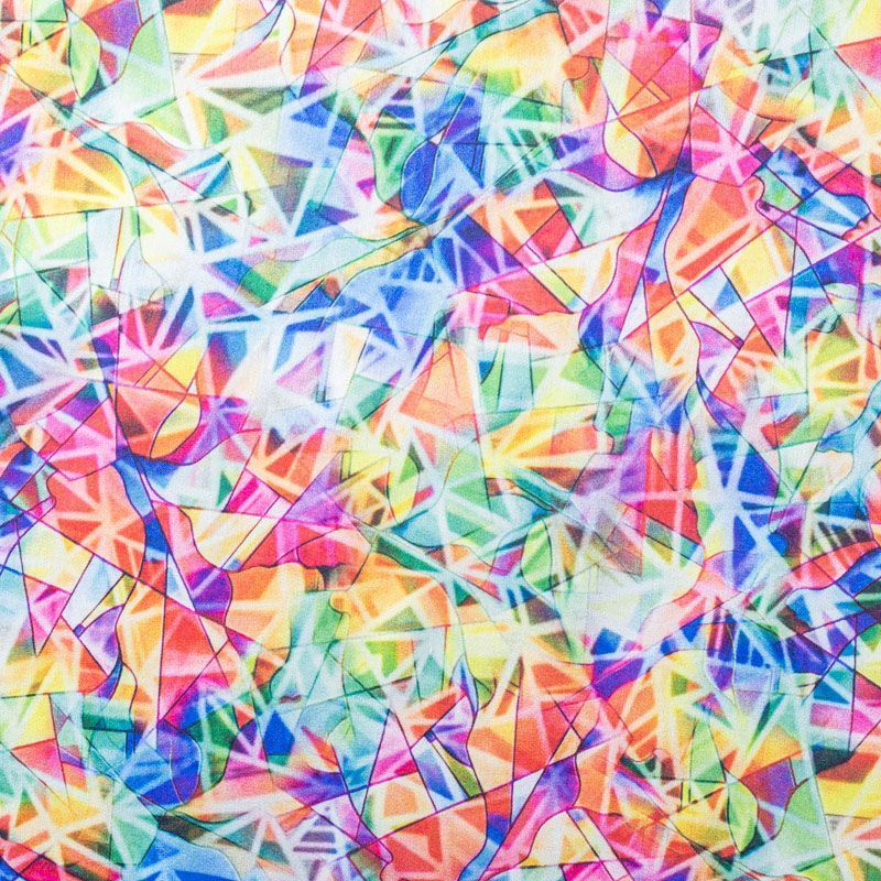 Плательно-блузочный штапель с добавлением шелка с ярким геометрическим принтом. Ткань очень мягкая, нежная, пластичная, шелковистая на ощупь, хорошо драпируется, практичная. Особенно актуальна летом, шелк-штапель очень легкий, обволакивающий прохладой. Идеален для пошива летней детской одежды, сарафанов, платьев, юбок, блузок, домашней одежды: халатов, ночной пижамы.