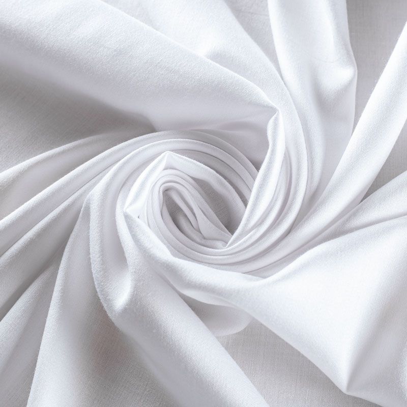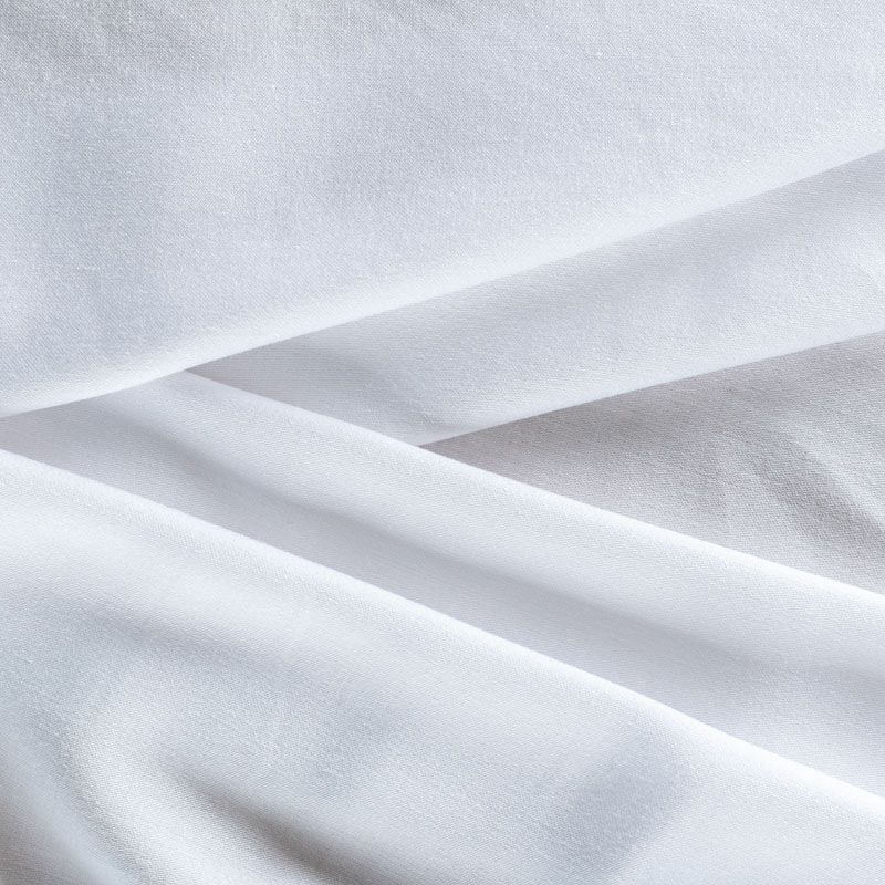 Плательно-блузочный штапель с добавлением шелка белого оттенка. Мягкий, нежный, пластичный, шелковистый на ощупь, хорошо драпируется, тянется за счет эластана в составе. Особенно актуален летом, он очень легкий, обволакивающий прохладой. Идеален для пошива летней детской одежды, сарафанов, платьев, юбок, блузок, домашней одежды: халатов, ночной пижамы.