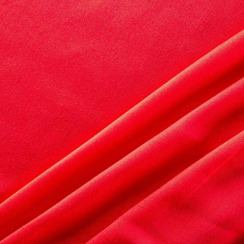 Плательно-блузочный штапель с добавлением шелка красного оттенка. Мягкий, нежный, пластичный, шелковистый на ощупь, хорошо драпируется, тянется за счет эластана в составе. Особенно актуален летом, он очень легкий, обволакивающий прохладой. Идеален для пошива летней детской одежды, сарафанов, платьев, юбок, блузок, домашней одежды: халатов, ночной пижамы.