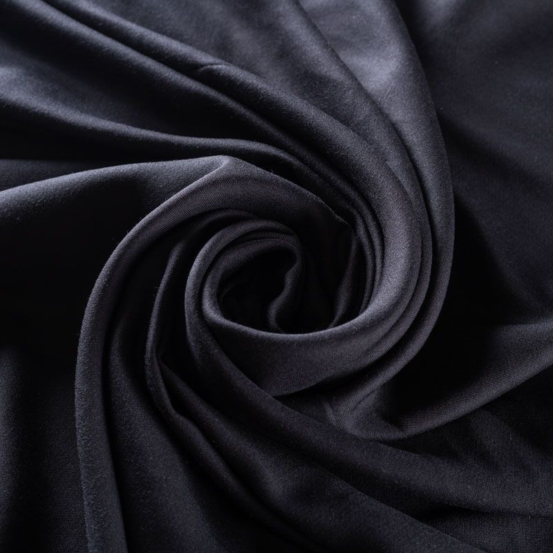 Плательно-блузочный штапель с добавлением шелка графитового, почти черного оттенка. Мягкий, нежный, пластичный, шелковистый на ощупь, хорошо драпируется, практичный. Особенно актуален летом, он очень легкий, обволакивающий прохладой. Идеален для пошива летней детской одежды, сарафанов, платьев, юбок, блузок, домашней одежды: халатов, ночной пижамы.