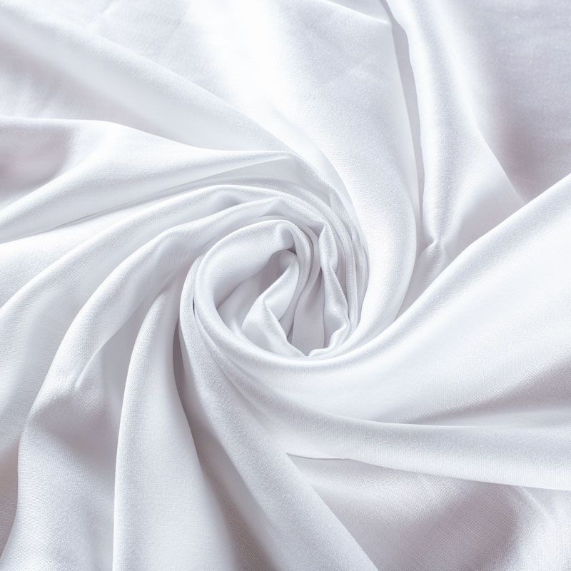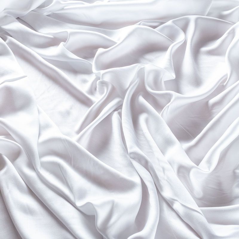 Плательно-блузочный штапель с добавлением шелка белого цвета. Мягкий, нежный, пластичный, шелковистый на ощупь, хорошо драпируется, практичный. Особенно актуален летом, он очень легкий, обволакивающий прохладой. Идеален для пошива летней детской одежды, сарафанов, платьев, юбок, блузок, домашней одежды: халатов, ночной пижамы.