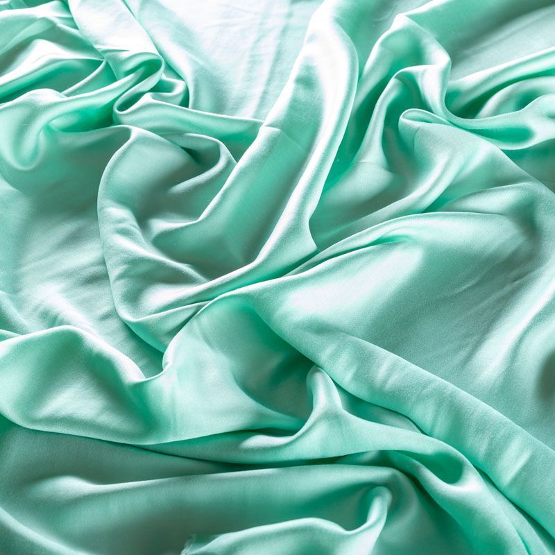 Плательно-блузочный штапель с добавлением шелка ментолового оттенка. Мягкий, нежный, пластичный, шелковистый на ощупь, хорошо драпируется, практичный. Особенно актуален летом, он очень легкий, обволакивающий прохладой. Идеален для пошива летней детской одежды, сарафанов, платьев, юбок, блузок, домашней одежды: халатов, ночной пижамы.