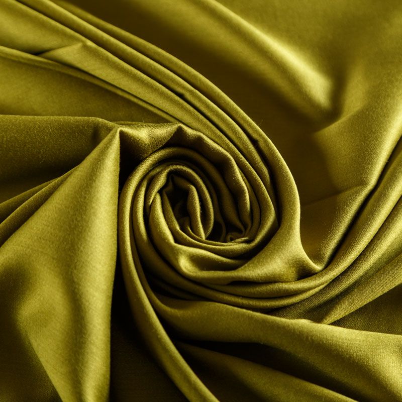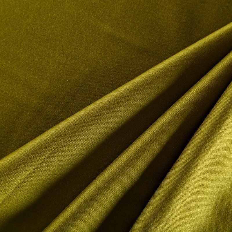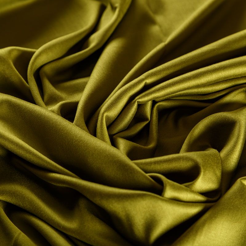 Плательно-блузочный штапель с добавлением шелка в зеленом оттенке. Мягкий, нежный, пластичный, шелковистый на ощупь, хорошо драпируется, практичный, тянется за счет эластана в составе. Особенно актуален летом, он очень легкий, обволакивающий прохладой. Идеален для пошива летней детской одежды, сарафанов, платьев, юбок, блузок, домашней одежды: халатов, ночной пижамы.