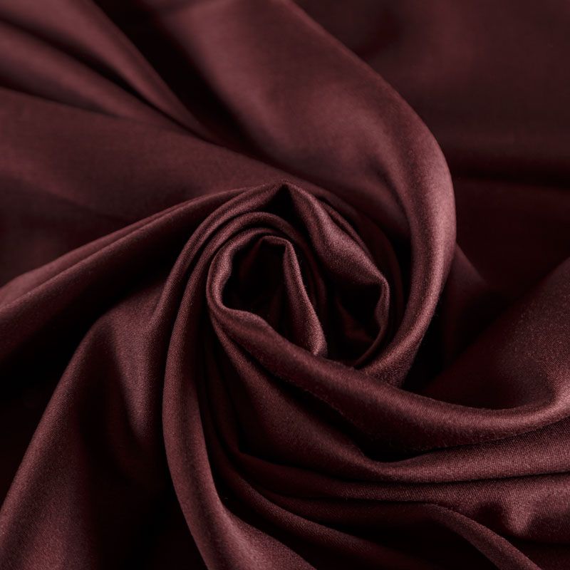 Плательно-блузочный штапель с добавлением шелка в бордовом оттенке. Мягкий, нежный, пластичный, шелковистый на ощупь, хорошо драпируется, практичный, тянется за счет эластана в составе. Особенно актуален летом, он очень легкий, обволакивающий прохладой. Идеален для пошива летней детской одежды, сарафанов, платьев, юбок, блузок, домашней одежды: халатов, ночной пижамы.
