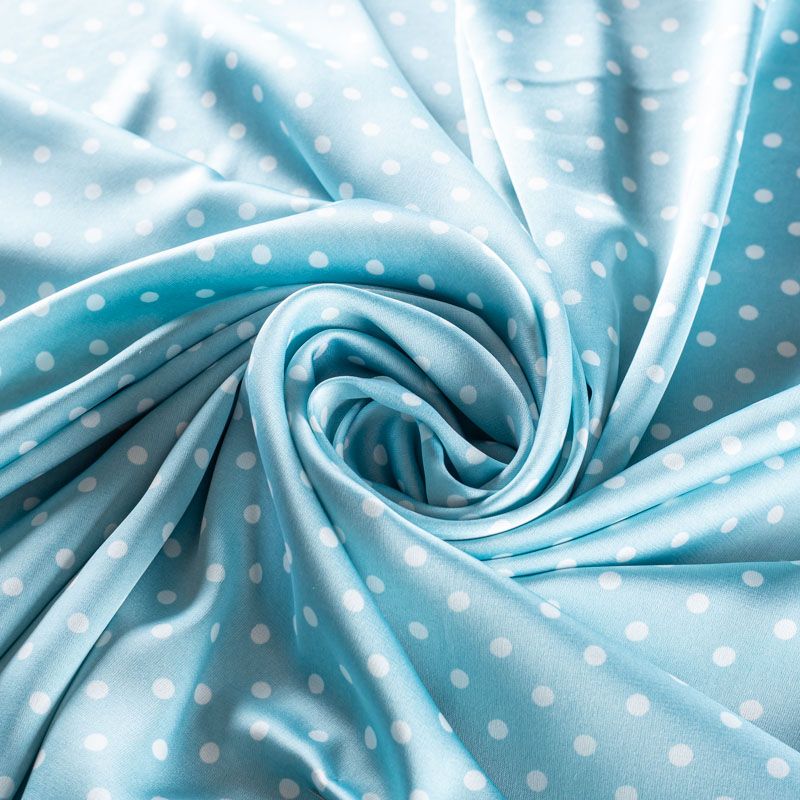 Тонкая, легкая, струящаяся ткань, не просвечивает, очень нежная и прятная к телу, обладает благородным атласным блеском, хорошо драпируется, тянется за счет эластана в составе. Идеально подойдет для пошива блузок, платьев и юбок, а также топов, платков, домашней одежды.
