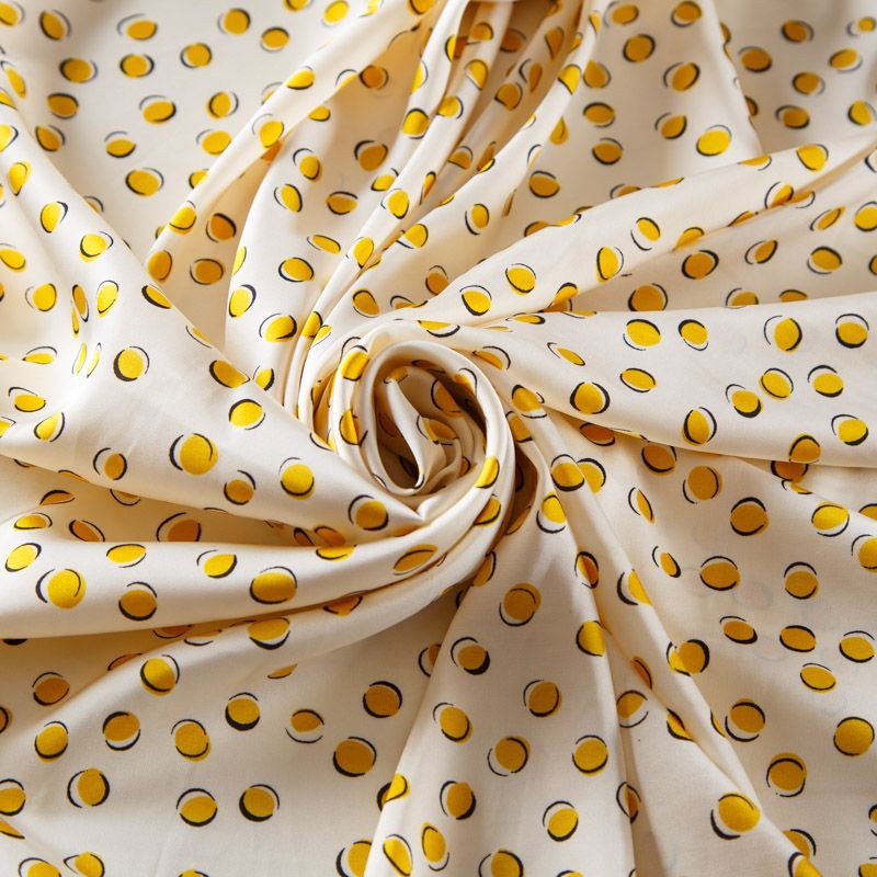 Шелк синтетический 065-13574 сливочный принтованный в Казани
