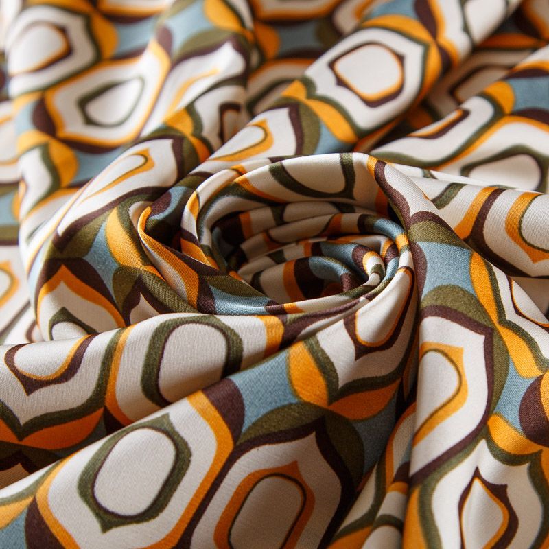 Шелк синтетический 065-13790 молочный принтованный в Казани