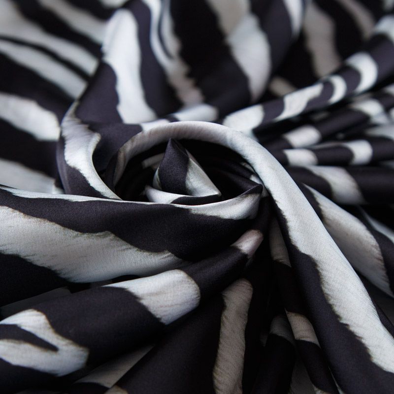 Шелк синтетический 065-13921 молочно-черный принтованный в Казани