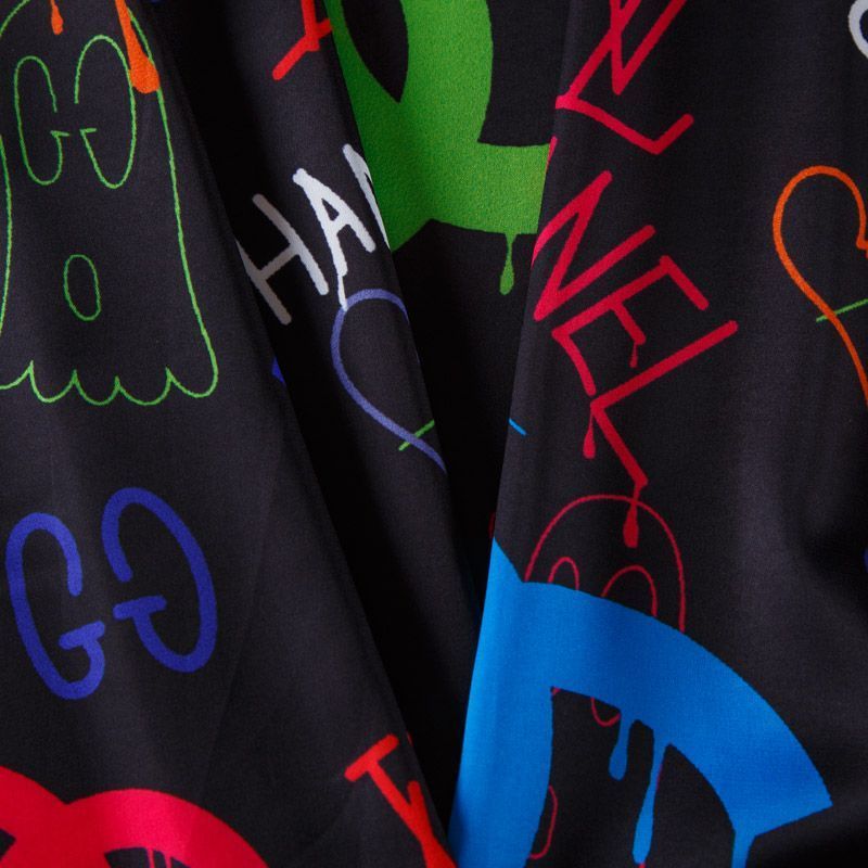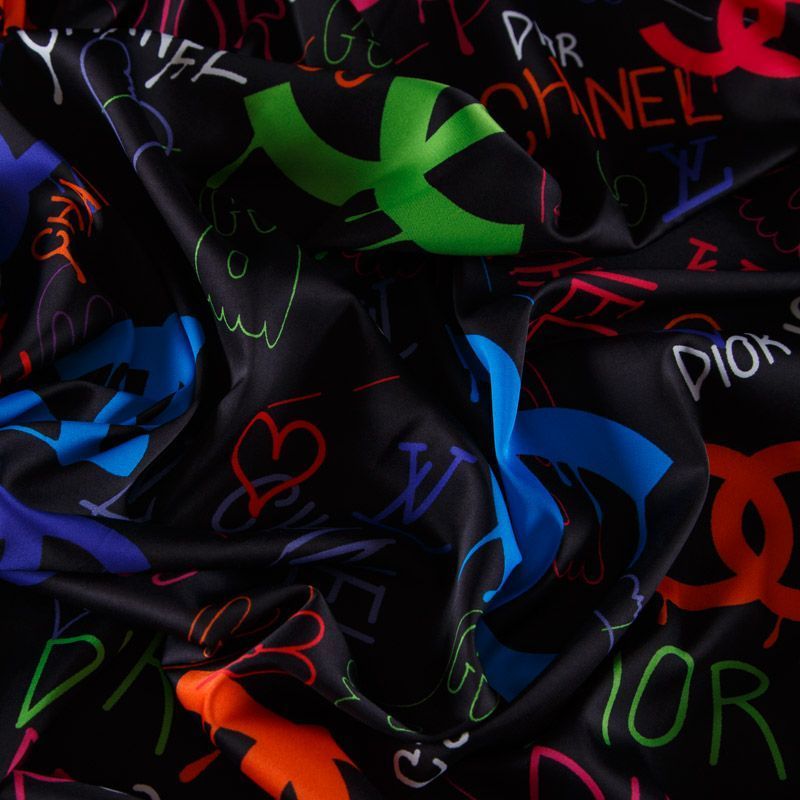 Шелк синтетический 065-13930 черный принтованный в Казани