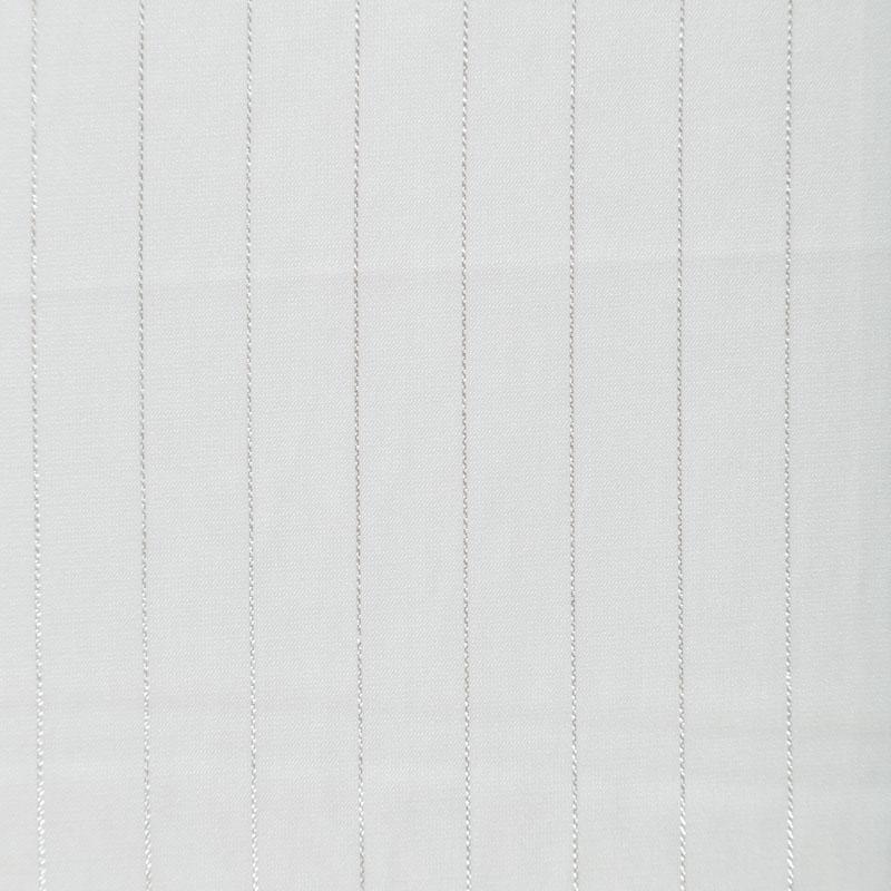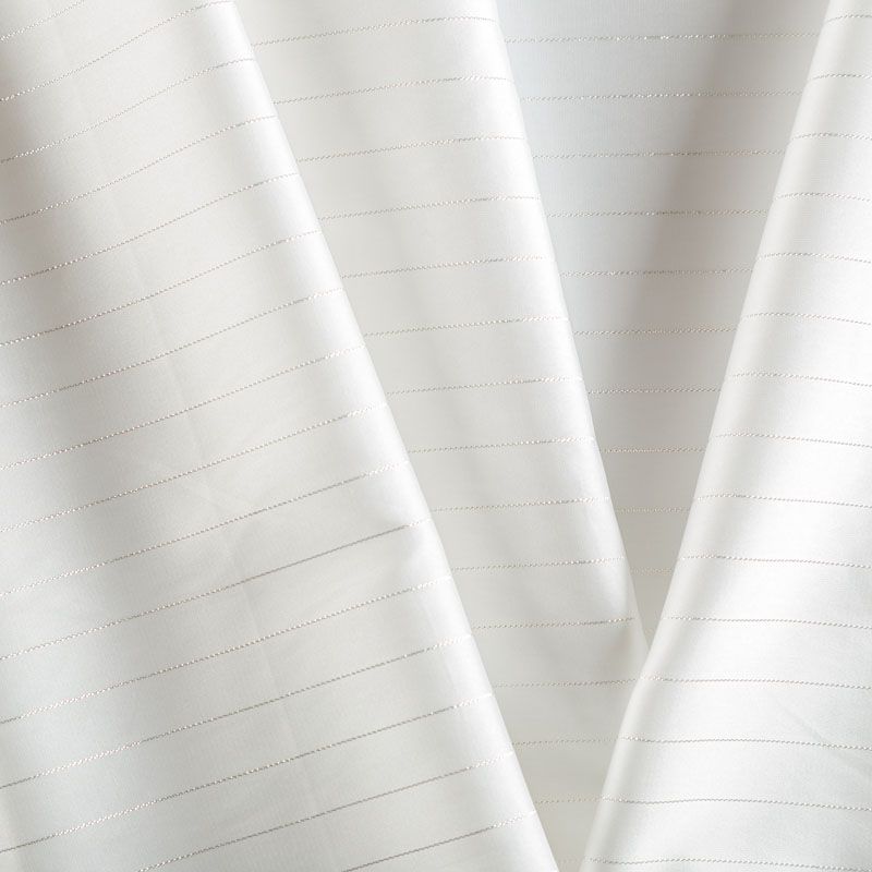 Тонкая, легкая, струящаяся ткань, декорированная тонкими вертикальными полосками люресовой нити, не просвечивает, очень нежная и прятная к телу, обладает благородным атласным блеском, хорошо драпируется, тянется за счет эластана в составе. Идеально подойдет для пошива блузок, платьев и юбок, а также топов, платков, домашней одежды.