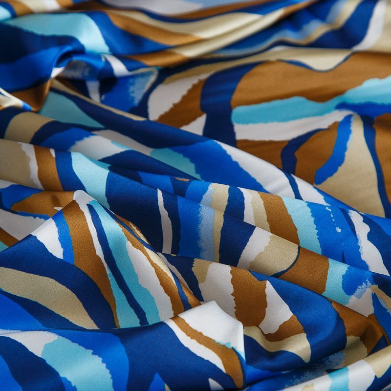 Шелк синтетический стрейч 065-17539 сине-голубой принтованный в Казани