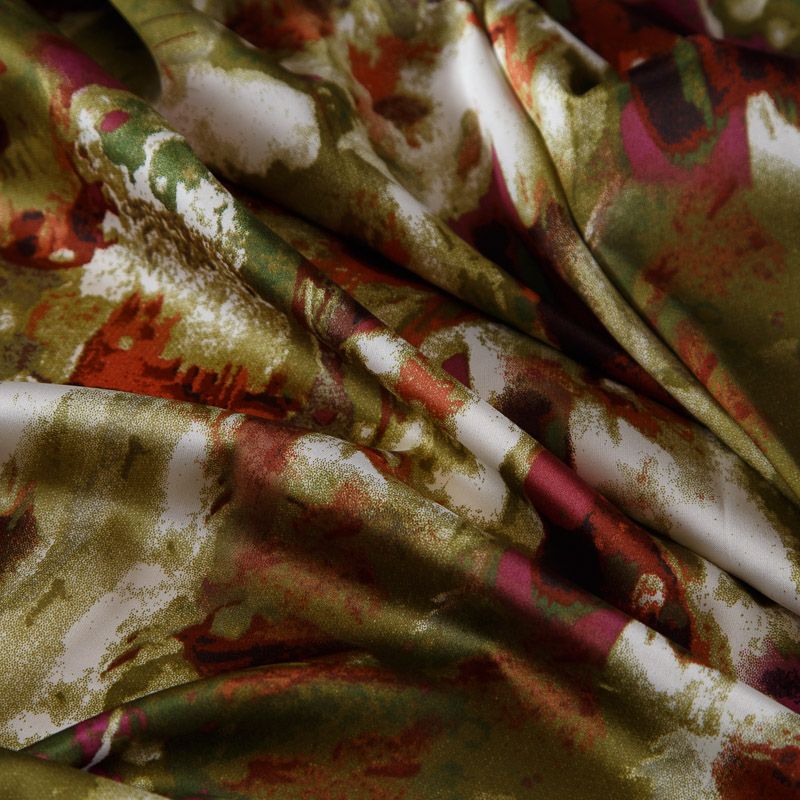 Шелк синтетический стрейч 065-17546 оливковый принтованный в Казани