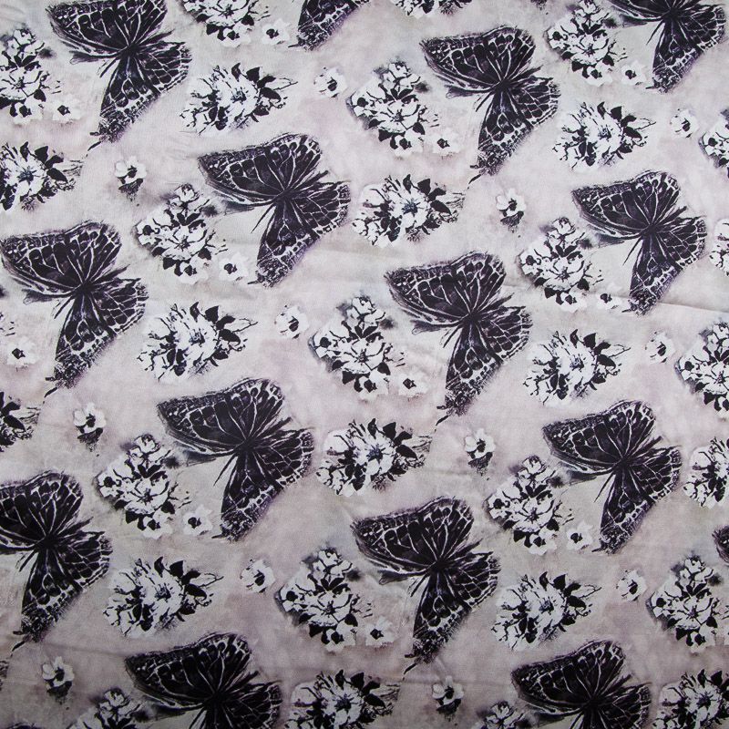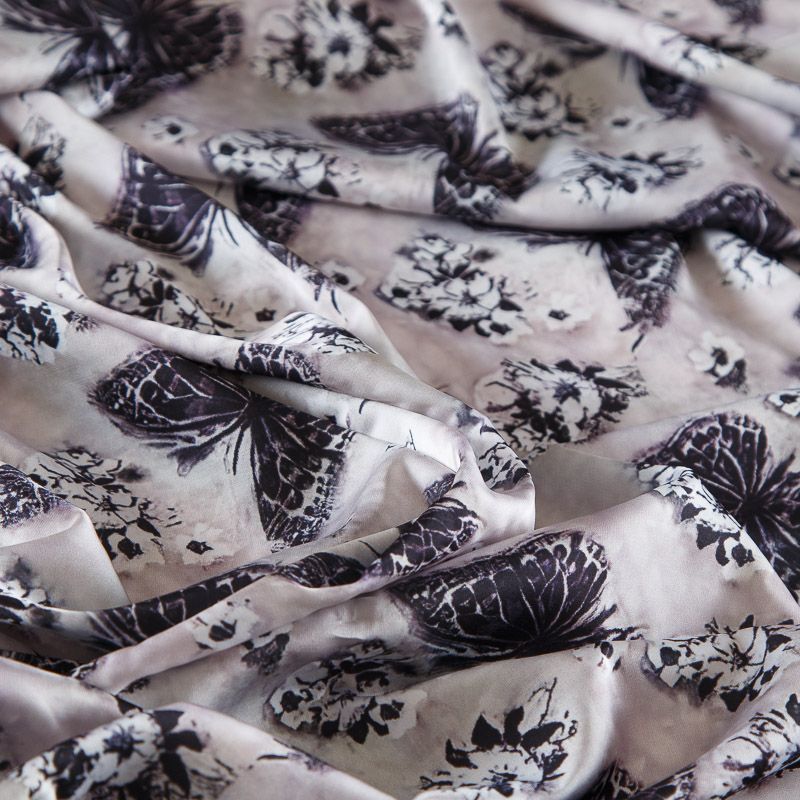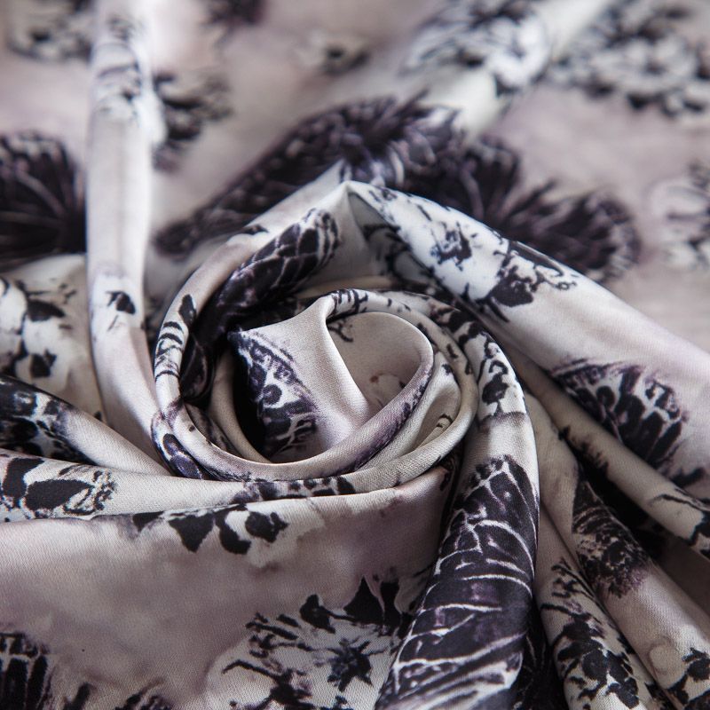 Шелк синтетический стрейч 065-17784 черый принтованный в Казани