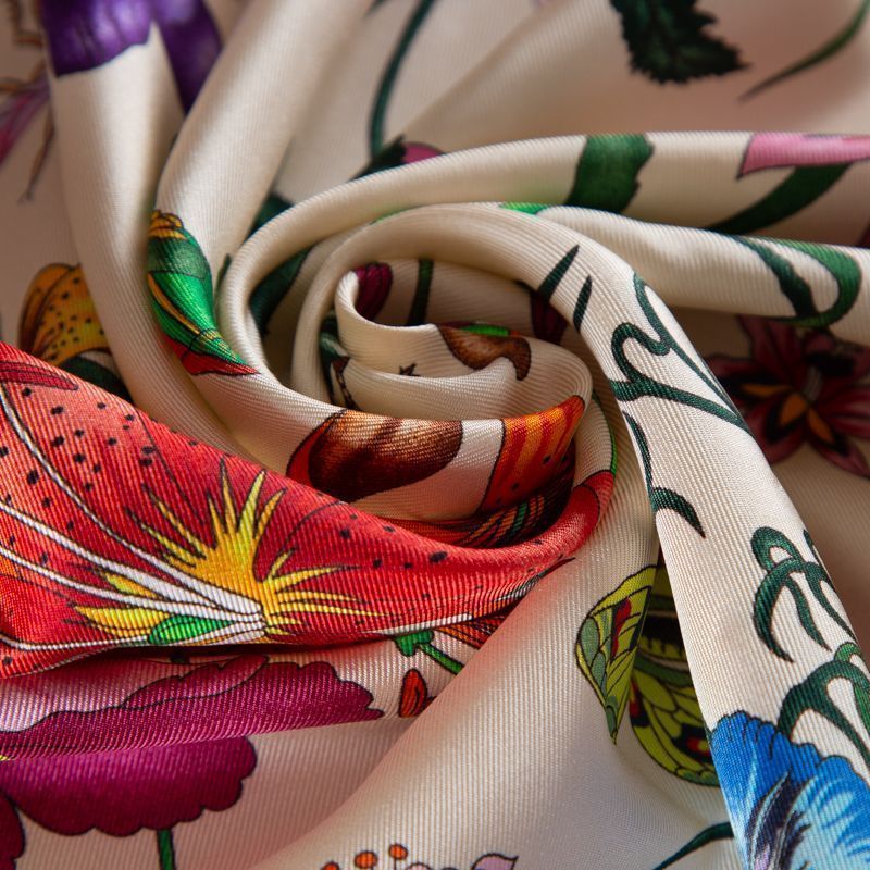 Шелк твил Gucci Flora платочный купон 064-19153 бордюр фуксия в Казани