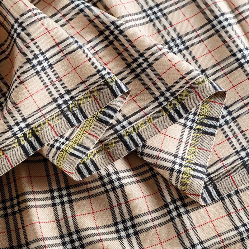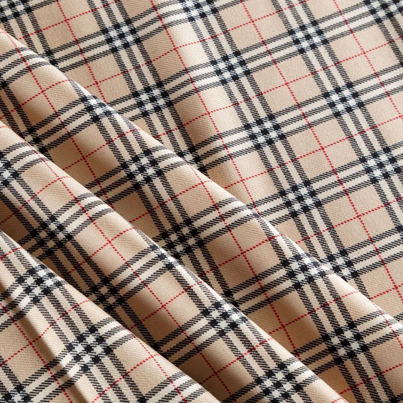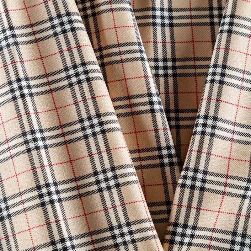 Костюмно-плательная итальянская шерсть средней плотности, мягкая, пластичная, хорошо драпируется и ниспадает. Очень теплая, уютная, не колется, в носке очень комфортная. Сочетание линий  черного, белого и бежевого цветов образуют сложную клетку тартан. Ткань прекрасно подойдет для пошива стильного платья прямого или расклешенного силуэта для сезона осень-зима, куртки-рубашки, юбки, костюмов, жакетов, брюк или шорт.