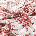 Шифон белого оттенка с мелким цветочным принтом и имитацией кружева. Струящийся, летящий, воздушный, полупрозрачный. На ощупь мягкий и приятный.Подойдет для пошива тончайших воздушных блуз, изумительных платьев со сборками и воланами и элегантных шарфов.