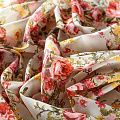 Шифон молочного оттенка с растительным принтом. Струящийся, летящий, воздушный, полупрозрачный. На ощупь мягкий и приятный. Подойдет для пошива тончайших воздушных блуз, изумительных платьев со сборками и воланами и элегантных шарфов.