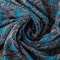 Шифон синего оттенка с черно-белым принтом пейсли. Струящийся, летящий, воздушный, полупрозрачный. На ощупь мягкий и приятный. Подойдет для пошива тончайших воздушных блуз, изумительных платьев со сборками и воланами и элегантных шарфов.