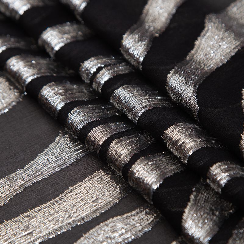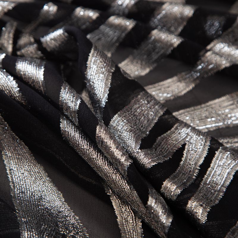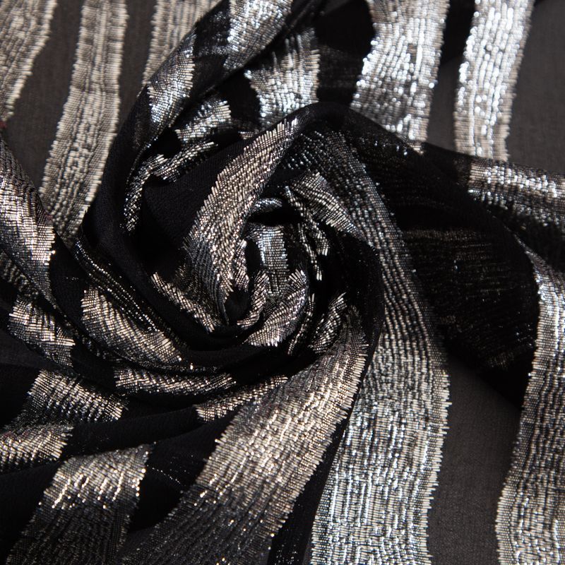 Шифон деворе шелковый 068-19623 черный/серебро в Казани