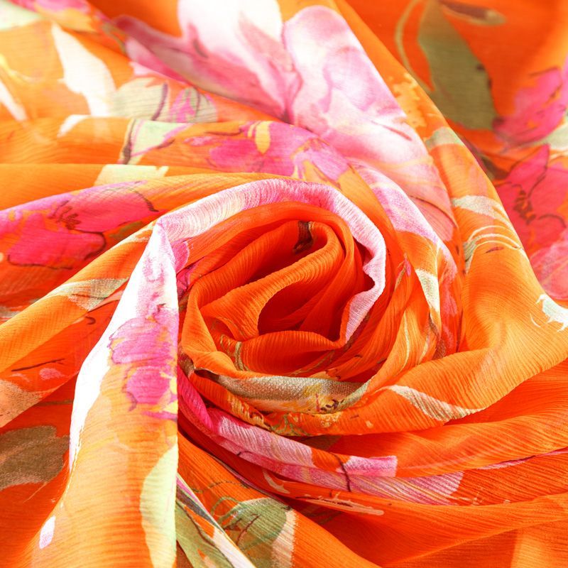 Шифон натуральный К02-426 апельсиновый принтованный в Казани