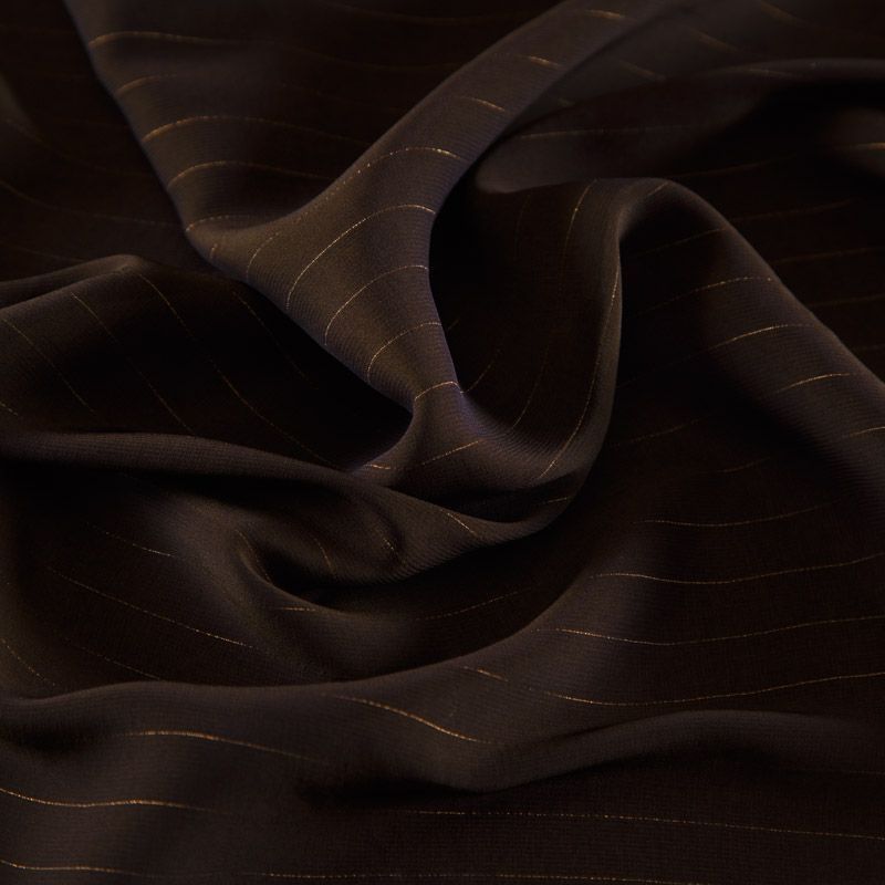 Итальянский смесовый шифон Gucci в оттенке темного шоколада с тонкими полосками люрекса. Полоски расположены горизонтально по ширине рулона.