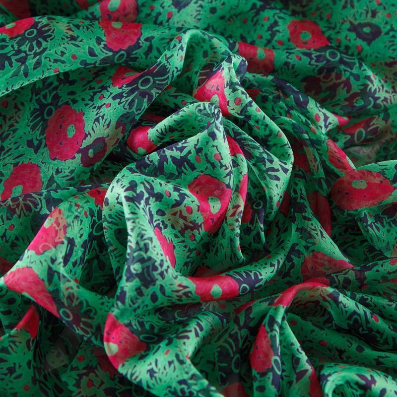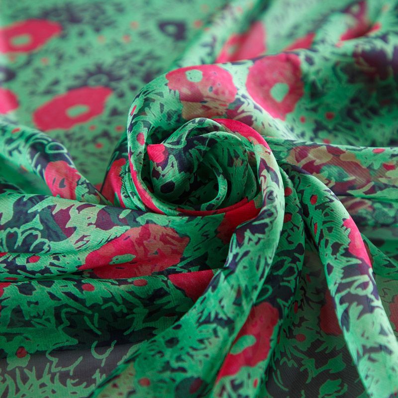 Шифон шелковый 068-12255 зеленый принтованный в Казани