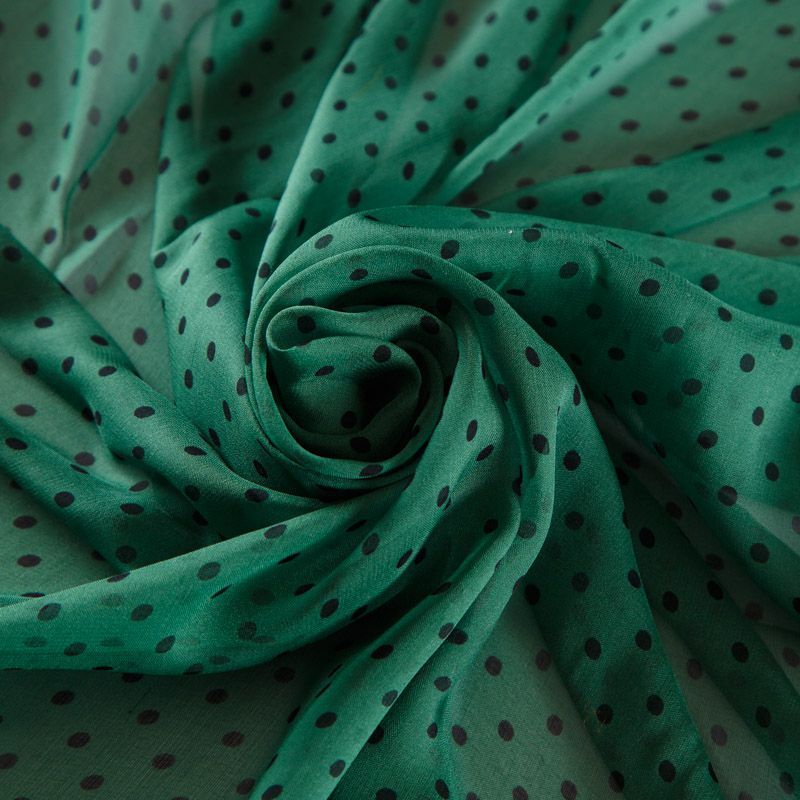Шифон шелковый 068-12257 зеленый принтованный в Казани