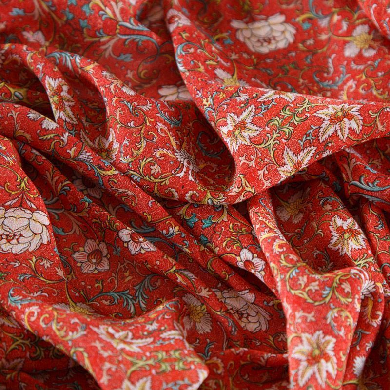Шифон шелковый 068-12316 кораллово-красный принтованный в Казани