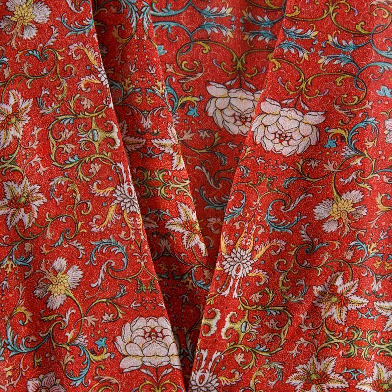 Шифон шелковый 068-12316 кораллово-красный принтованный