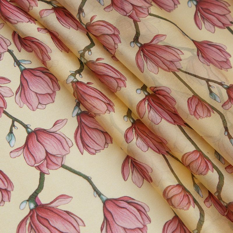 Шифон шелковый 068-17093 разбеленный желтый принтованный в Казани