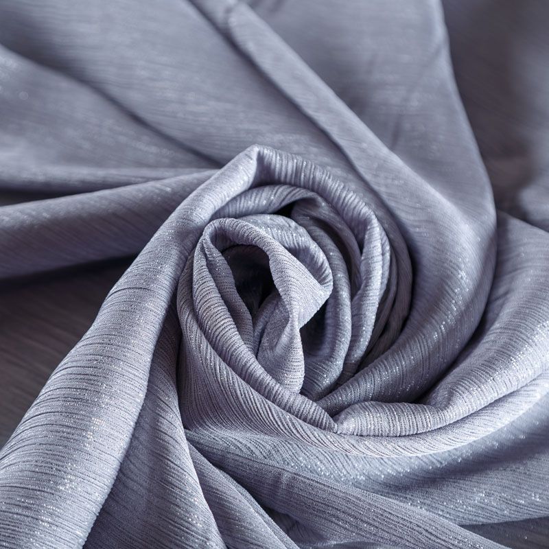 Воздушная жатая ткань с прозрачной люрексной нитью, легкая, тонкая, полупрозрачная. Не тянется и хорошо сохраняет форму. На ощупь шифон-жатка очень мягкий и приятный. Подойдет для пошива тончайших воздушных блуз, изумительных вечерних и летних платьев в пол, коротких коктейльных платьев, топов, блузок, туник и элегантных шарфов.