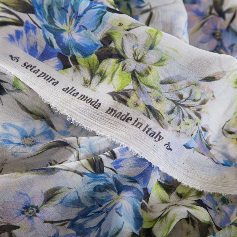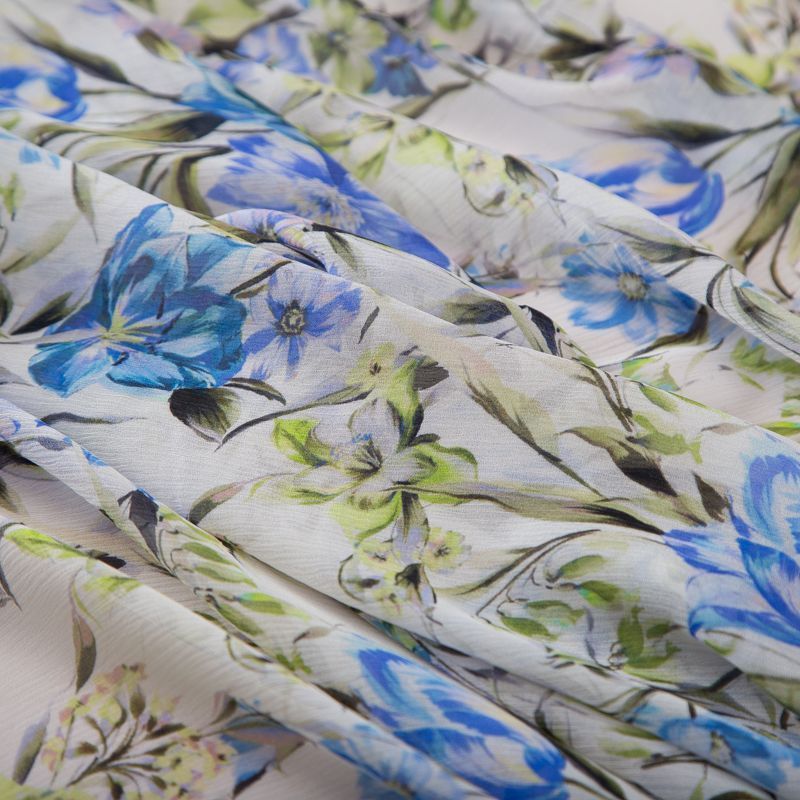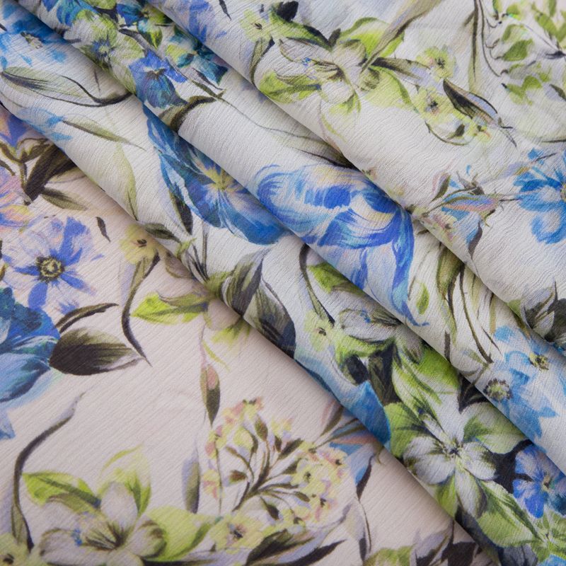 Шифон-жатка шелковый 068-19248 молочный принтованный в Казани