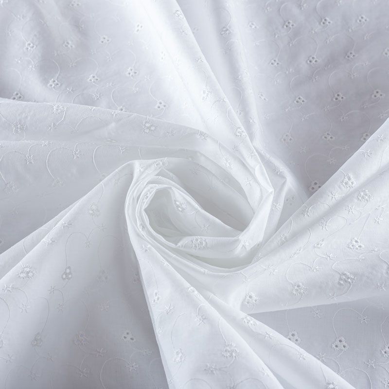 Тренд и мастхэв этого лета - итальянское шитье-ришелье на хлопковой основе. На белом фоне не крупная элегантная вышивка расположена по всему полотну. Ткань мягкая, чуть держит форму, приятная на ощупь, слегка просвечивает. Идеально подойдет для пошива рубашки, блузы, топа в воланами, туники, платья, сарафана, юбки.