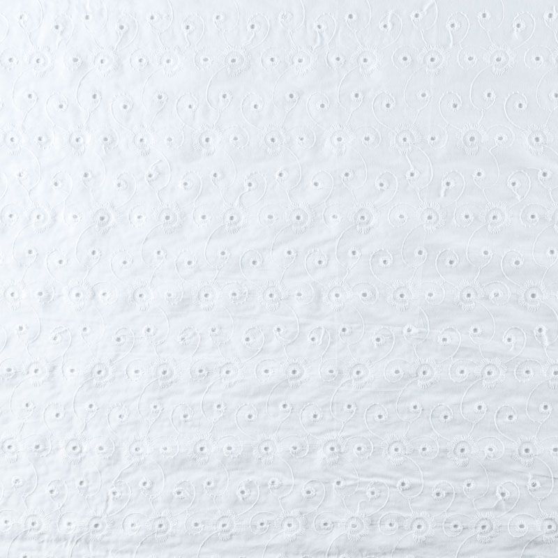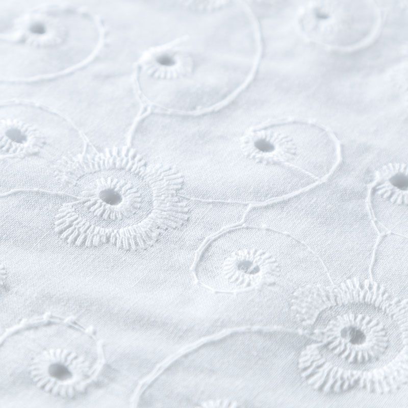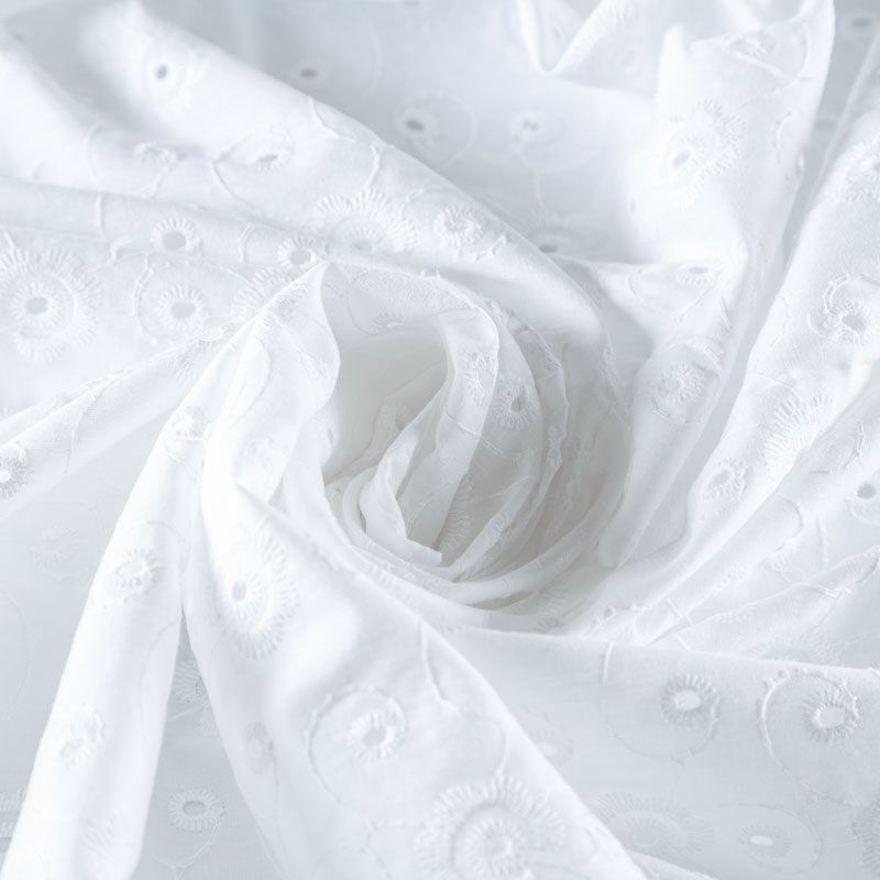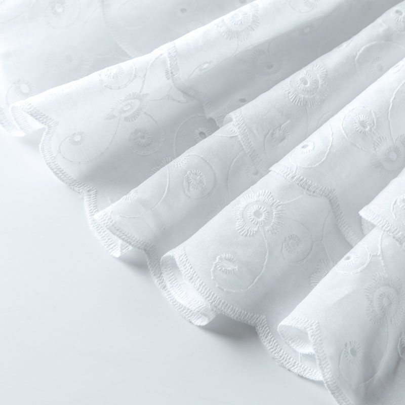 Итальянское шитье на белоснежной хлопковой основе с элегантной вышивкой,  расположеннной по всему полотну. Ткань мягкая, легкая, пластичная, приятная на ощупь, просвечивает, потребуется подклад. Обе кромки ткани оформлены фигурными фестонами. Идеально подойдет для пошива рубашки, блузы, топа в воланами, туники, платья, сарафана, юбки, шорт.