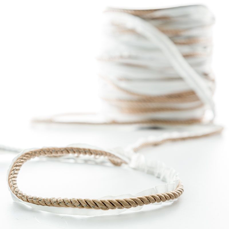 Декоративный витой круглый шнур, снабженый тесьмой для втачивания в стыковочный шов изделия. Применяется для отделки мягкой мебели, чехлов, декорирования домашнего текстиля, штор, покрывал, подушек. Позволяет изделию сохранять форму, образуя каркас. Диаметр шнура - 6 мм.