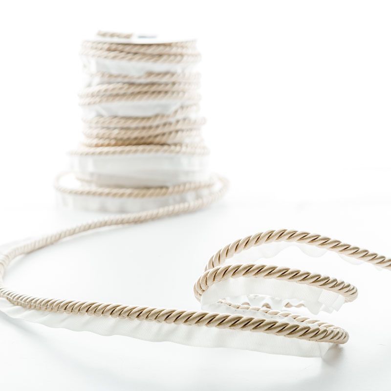 Декоративный витой круглый шнур, снабженый тесьмой для втачивания в стыковочный шов изделия. Применяется для отделки мягкой мебели, чехлов, декорирования домашнего текстиля, штор, покрывал, подушек. Позволяет изделию сохранять форму, образуя каркас. Диаметр шнура - 8 мм.