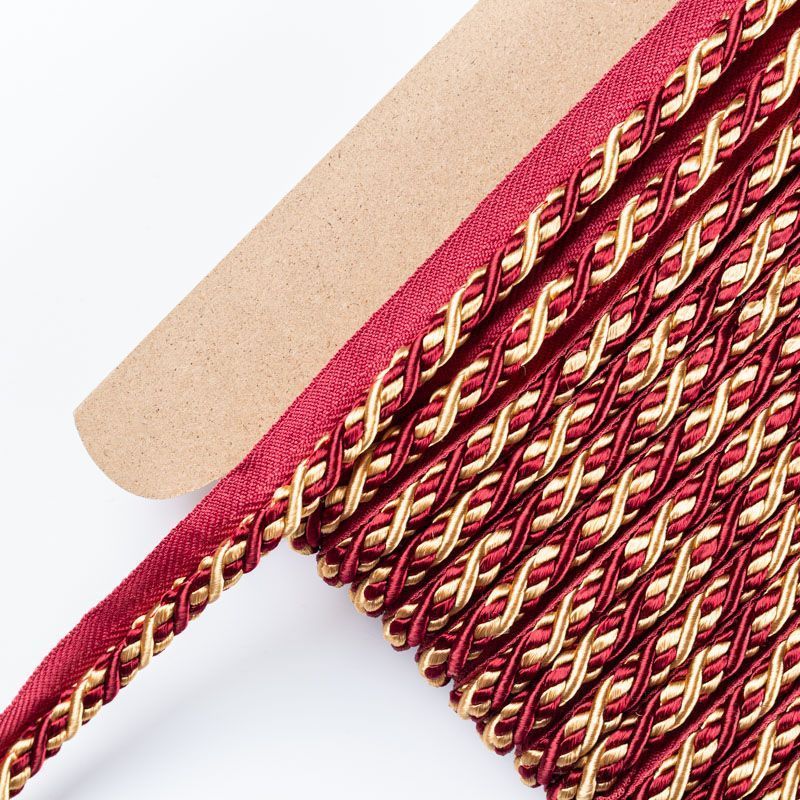 Декоративный витой круглый шнур, снабженый тесьмой для втачивания в стыковочный шов изделия. Применяется для отделки мягкой мебели, чехлов, декорирования домашнего текстиля, штор, покрывал, подушек. Позволяет изделию сохранять форму, образуя каркас. Диаметр шнура - 8 мм. Общая ширина шнура с тесьмой - 2 см.