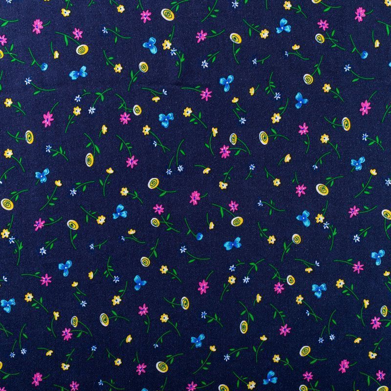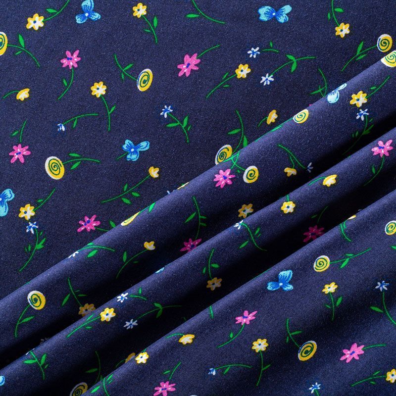 Итальянский плательно-блузочный штапель с мелким цветочным принтом на темно-синем фоне. Мягкий, тонкий, нежный, пластичный, приятный на ощупь, хорошо драпируется, практичный. Подойдет для пошива платья, топа, блузки, рубашки, юбки, летних брюк.