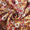 Плательно-блузочный штапель с цветочным принтом в молочно-бежевых оттеннках на бордовом фоне. Мягкий, тонкий, нежный, пластичный, приятный на ощупь, хорошо драпируется, практичный. Подойдет для пошива платья, топа, блузки, рубашки, юбки, летних брюк.
