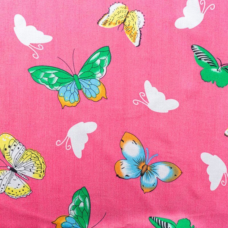 Плательно-блузочный штапель с романтичным принтом в виде цветных стилизованных бабочек на розовом фоне. Мягкий, тонкий, нежный, пластичный, приятный на ощупь, хорошо драпируется, практичный. Подойдет для пошива платья, топа, блузки, рубашки, юбки, летних брюк.