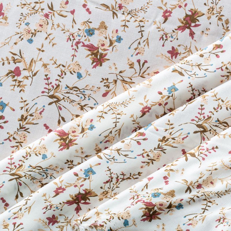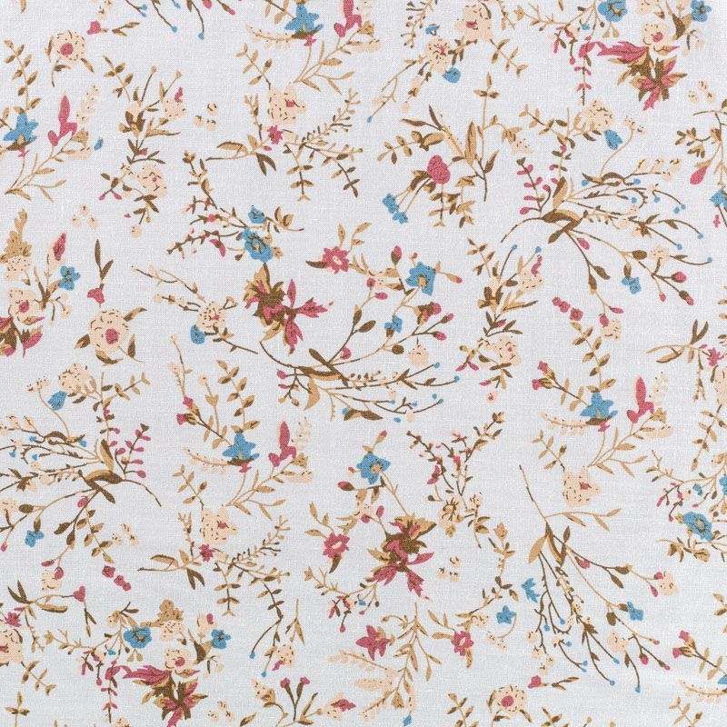 Плательно-блузочный штапель с цветочным принтом на белом фоне. Мягкий, тонкий, нежный, пластичный, приятный на ощупь, хорошо драпируется, практичный. Подойдет для пошива платья, топа, блузки, рубашки, юбки, летних брюк.